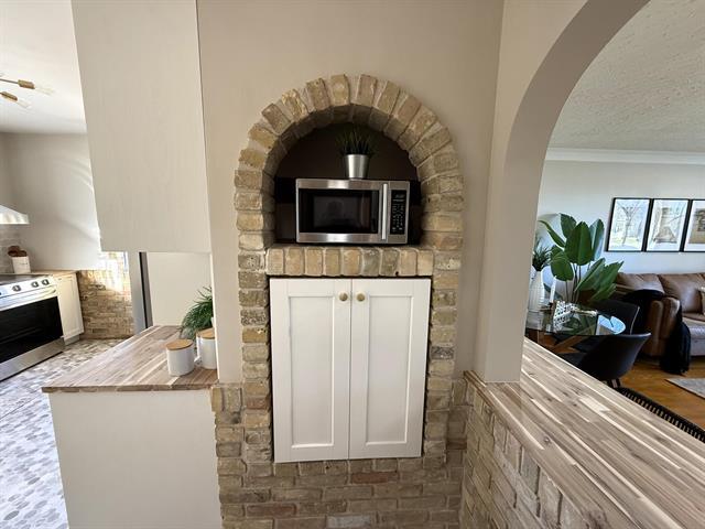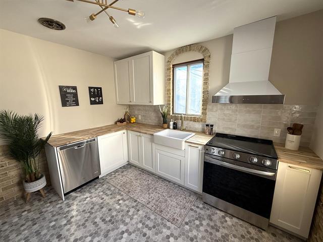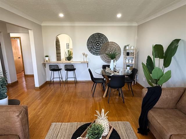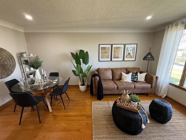 S/S NOVEMBER 5 AFTER 5PM OFFERS NOVEMBER 12. Better look at me! This 3 plus bedroom, 2 bathroom home is sure to impress! Enter the bright and spacious living room and dining room combo with hardwood floors, cove ceilings, pot lighting, sit-up coffee bar open to fully remodeled kitchen. Newer stainless steel appliances, tile back-splash, brick accents, hood fan and more! Primary bedroom with walk-in closet, fully remodeled main floor bath. Finished lower level with rec-room, office/den, laundry and storage rooms, fully remodeled 3pc bath, carpet 2025. Fenced yard with paved parking and/or patio, detached garage with opener. C/air, hi-eff furnace, mostly PVC windows, tastefully upgraded and remodeled with designer decor throughout, 6 appliances included, this one shines!
