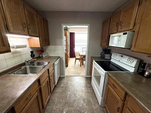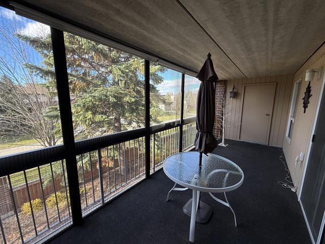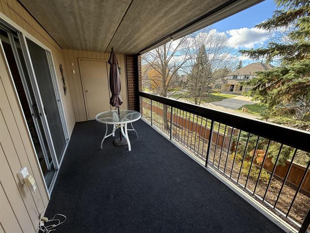 Move in and enjoy! This well located and meticulously maintained 2 bedroom, 2 bathroom condo is sure to impress! Enter the bright and spacious L-shaped living room and dining room with electric fireplace, kitchen with oak cabinets, full main bath. Primary bedroom with an abundance of closet space, 4pc en-suite, good sized second bedroom. Second floor end unit, southwest corner, patio doors to large west setting balcony. Enjoy to the open air balcony or pull across the custom screen enclosure! In-suite laundry, heated under-ground parking stall, 6 appliances included and more! This one shines!