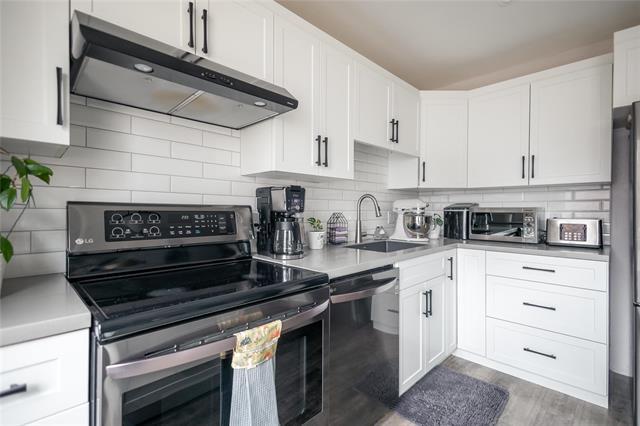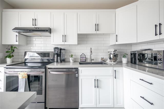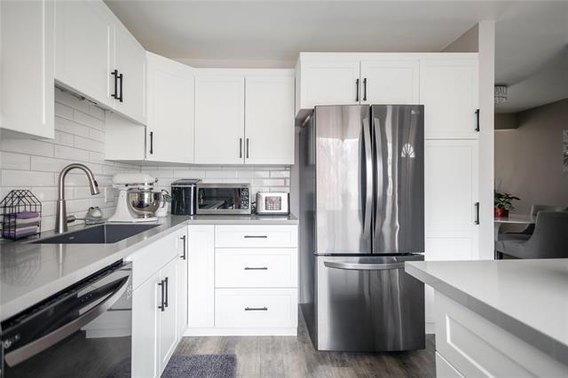 Open For Admiration! This 3 bedroom, 3 bathroom townhouse style condo is sure to impress! Bright and cozy living room and dining room with electric fireplace, patio doors to patio and laminate floors throughout. Fully remodeled island kitchen with quartz counters, tile back-splash, black stainless steel appliances and 2pc bath on main level. Primary bedroom with 2pc en-suite and walk-in closet, 2 other bedrooms and full bath on upper level. Fully finished rec-room with large laundry and storage room. Fenced yard, patio, c/air 2021, hi-eff furnace 2021, hot water tank 2020, kitchen 2019, PVC windows, newer laminate floor, upgraded baths. Pride of ownership, meticulously maintained, designer decor throughout! This one shines!