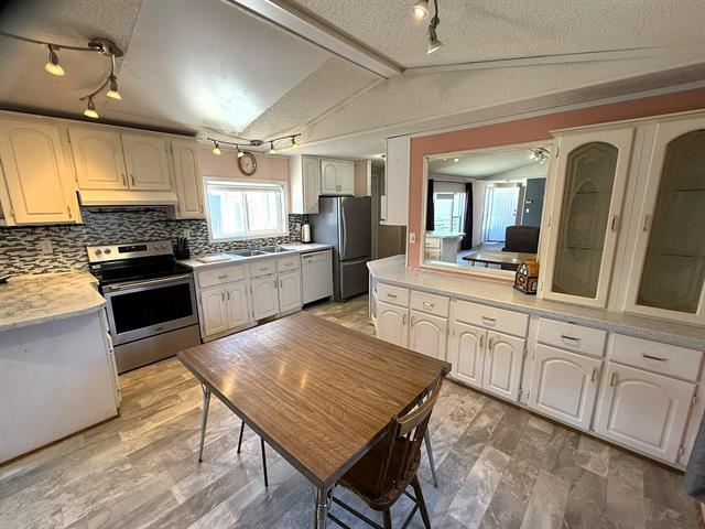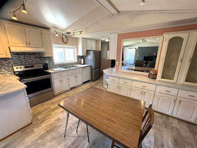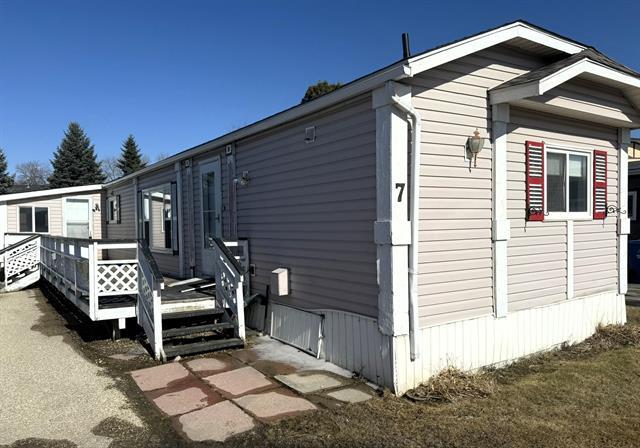 Start Here! Well located in the south end of Downs Village, this 3 bedroom, 2 bathroom mobile home is sure to pique your interest. Bright and spacious living room and dining room, vaulted ceilings, original white kitchen with newer fridge and stove. Large primary bedroom with walk-in closet and ensuite bath with jetted tub. 2 additional bedrooms and full bath at opposite end of the home. Laundry and storage area with washer and dryer, 3 season sun-room. Large deck area, shed, PVC windows, c/air, 5 appliances included. A little TLC would go a long way!