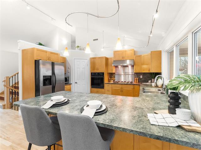 S.S Dec 4th. OH Dec 7th, 2–3:30 PM. Offers Dec 11th, 6:30 PM. Fall in love w/ this custom-built cab-over offering views of the Seine River. Main floor features 2pc powder room, beautiful maple hardwds, custom cabinetry & a built-in buffet in the dining area. A wood-burning fireplace adds warmth & charm. The well-appointed kitchen incls gas stove w/ a warming rack, heated floors, double sinks overlooking the South backyard, breakfast bar & pantry. A relaxing 3 season sunroom completes the main level. Upstairs, the primary suite offers an office/reading nook, double sinks, corner jetted tub, separate shower & laundry area. Lower level has oak hardwds, large windows that fill the space w/ natural light, cozy rec room, 2 bedrms & an office. Outside, enjoy a spacious deck, patio area & a pond w/ an optional koi setup. Add'l highlights incl double tandem insulated, drywalled & heated garage w/ front & rear overhead doors, 20-amp split receptacles, a 220-V plug and tons of storage. Both home and garage are built on piles & surrounded by weeping tiles, 40-yr shingles ('25), radiant ceiling heat, gas BBQ hookup, c/vac, c/air, water softener and carbon water filter. Don’t miss out on this truly special home!