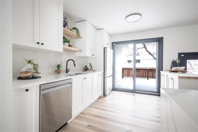 S/S NOW OFFERS AS RECEIVED. OPEN HOUSE SATURDAY DECEMBER 13TH FROM 2:30-4:00PM. Act Fast! Wow! This well located and fully remodeled 3 plus bedroom, 2 bathroom home is sure to impress! Enter the bright and open floor plan, living room with floor to ceiling windows, pot lighting and formal dining area. Fully remodeled kitchen with quartz counters, butcher block coffee bar area, pendant lighting, tile back-splash, 3 new stainless steel appliances, patio doors to deck. Fully remodeled main floor bath, 3 bedrooms, primary bedroom with 2pc en-suite. Freshly painted with new LVP flooring, light fixtures, all bedroom windows 2025! Fully finished rec-room with new carpet, gas fireplace, large office/hobby room, laundry and storage areas. fenced yard, deck, newer hi-eff furnace, hot water tank, c/air, shingles, kitchen, baths, paint, flooring, the list goes on! Attention to detail with designer decor throughout, this one shines!