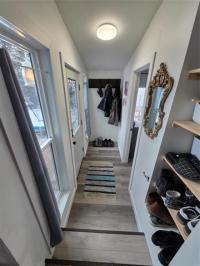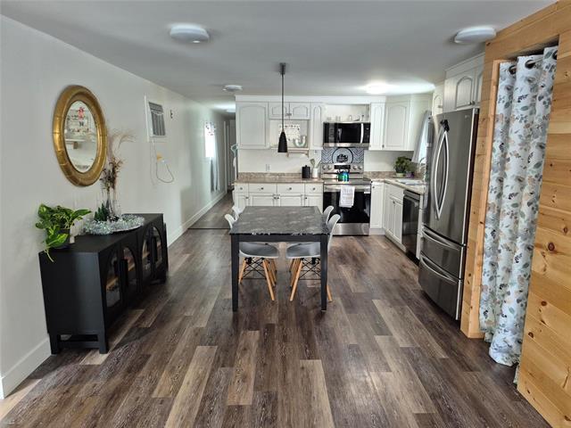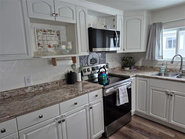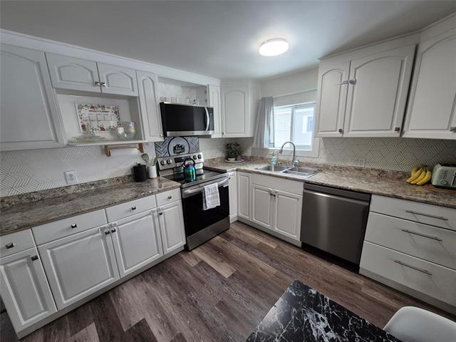 OPEN HOUSE: SATURDAY, DECEMBER 20th @ 1:00-3:00 pm. Welcome to this beautifully updated mobile home located in a well-kept mobile home park. This move-in-ready home offers numerous upgrades throughout, starting with new shingles and PVC windows for added comfort and efficiency. Inside, you’ll love the modern vinyl plank flooring and the bright, spacious eat-in kitchen and living room, perfect for everyday living and entertaining. The kitchen features a pantry, along with newer countertops, stylish backsplash, updated sink and faucet, while the renovated bathroom showcases porcelain tile and a double vanity for a clean, contemporary feel. Additional highlights include a large laundry room with ample storage, a convenient entrance addition with built-in storage shelves, and a thoughtful, functional layout throughout. Outside, you’re greeted by great curb appeal, a front porch, garden beds, and a storage shed—ideal for enjoying outdoor space and keeping organized. A fantastic opportunity for affordable, low-maintenance living in a welcoming community.