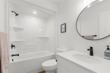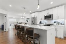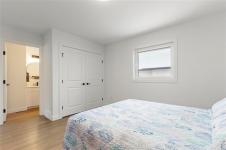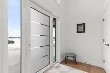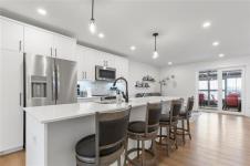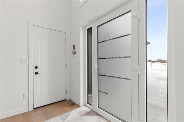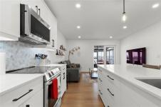Showings start Thursday January 15. Immaculate and truly move-in ready, this like-new home blends modern comfort with thoughtful design. Features include central air conditioning, quartz countertops in both the kitchen and bathrooms, pot lighting throughout the main living areas, and efficient European doors paired with triple-pane tilt-and-turn windows. The remainder of the 5-year new home warranty adds peace of mind. The well-planned layout offers 1,038 square feet of living space with two bedrooms and two bathrooms. A stylish galley kitchen showcases soft-close cabinetry and a tiled backsplash, while the primary bedroom includes a four piece ensuite. Additional highlights include a double attached insulated and drywalled garage with concrete driveway, an ICF foundation with pony wall in the basement, and a fully fenced backyard complete with garden boxes, storage shed, and a gazebo on the deck.