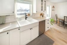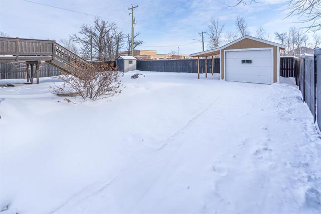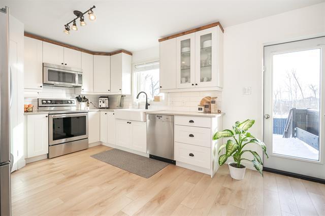 Welcome to this beautiful 1175 sq ft, bi-level home in Kleefeld just steps from K-8 school, finished with Hardie board siding and stone veneer for great curb appeal. A paver-style walkway leads to the front, providing a polished welcoming approach. Inside, the foyer and stairs feature tile flooring, leading up to a bright main floor with vinyl plank flooring throughout. The living room offers tray ceilings and pot lights, while the kitchen features quartz countertops, white shaker-style cabinets with soft-close doors and drawers, farmhouse sink, stainless steel appliances and a corner pantry. The primary bedroom has direct access to a 4-piece Jack & Jill bathroom. With two additional main-floor rooms including Bedroom 2 and Bedroom 3. Bedroom 3 is currently used as a laundry room but easily converted back. Triple-pane windows and patio door lead to a large deck and fully fenced yard with an 8’ x 12’ shed. The partially finished basement offers a carpeted rec room, 4th bedroom, 4-piece bath, dual-pane windows, and potential for a 5th bedroom.
