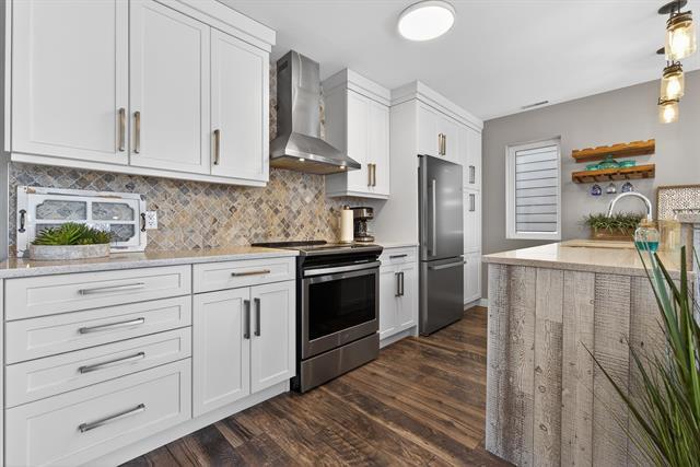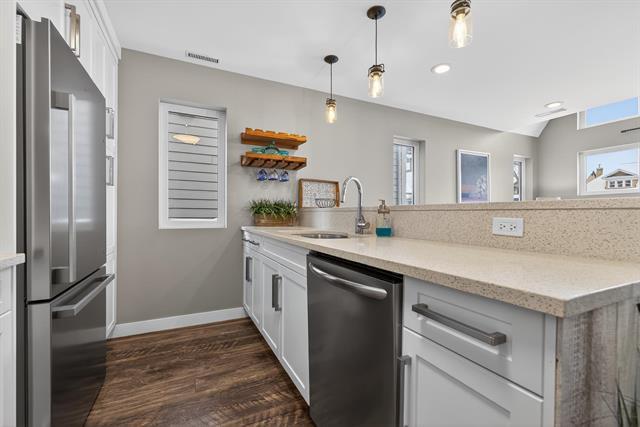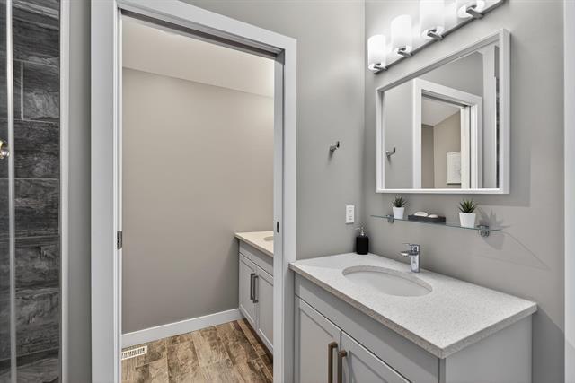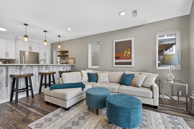 NEW REVISED PRICE for this fabulous remodeled & upgraded 2 story condo in the heart of Crescentwood! Built in 2014, the unit has been updated since 2019 with new kitchen, flooring, bathrooms with tile, and more! Open plan with big bright windows. Living room offers patio doors to private deck. Dining room opens to main floor allowing for expansion for those big dinners. Spectacular kitchen with quartz counter, white shaker cabinets, tile backsplash, chimney hood fan, stainless steel appliances and raised eating bar! Down the hall you find one bedroom w/walk-in closet and a bathroom including spectacular tile shower & main floor laundry. Second deck of garden door gives you southern sun exposure. Up the open staircase you find an open loft/den space (which could be closed for 3rd bedroom) and Primary bedroom with deep wall closet/additional storage, and a gorgeous ensuite with 2 sinks undermount in quartz & water closet. Attached insulated garage & parking behind.