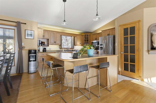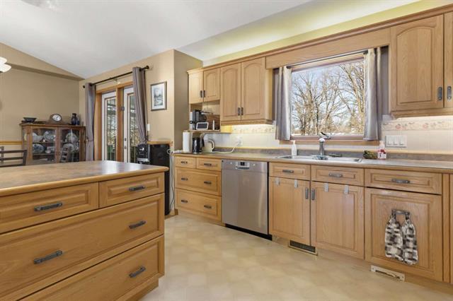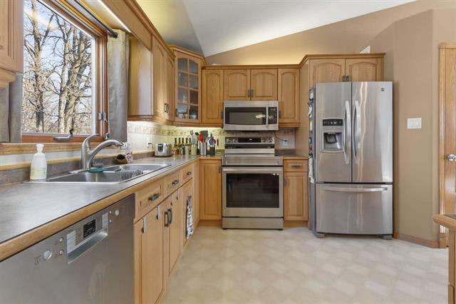 S/S Jan.30. OTP presented evening of Feb 3. Pride of ownership shines throughout this well-maintained, custom-blt family home offering quality craftsmanship with a functional layout. The open-concept main flr is ideal for modern family lvg, featuring a solid oak kitchen with newer appls. that flows effortlessly into the spacious dining area & lge lvg.rm. filled with abundant natural light. Dng area opens to a bright sunroom with adjacent composite deck complete with a gas line hookup, creating the perfect setting for summer entertaining. The primary bdrm provides a WIC & 3pce ensuite. Two additional generous bdrms, a full 4pce bath, ample closet space, and a convenient mudroom with blt in storage complete the main flr. The fully finished lower level features in-flr heat and an expansive family rm with wood-burning FP, blt in cabinetry with sink offers plenty of flex space for entertaining. 2 additional bdrms, a 3pce bath, storage rm, and extensive closet space add versatility. Outside, enjoy the mature oak-treed yard with sprinkler system for easy maintenance. Recent updates incl shingles, insul, flrg, Hi-eff furn, CA, HRV, and HWTs. This move-in-ready home is perfectly suited for family living.