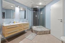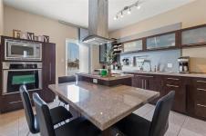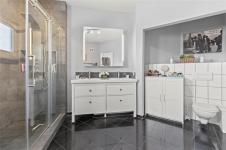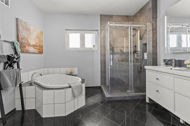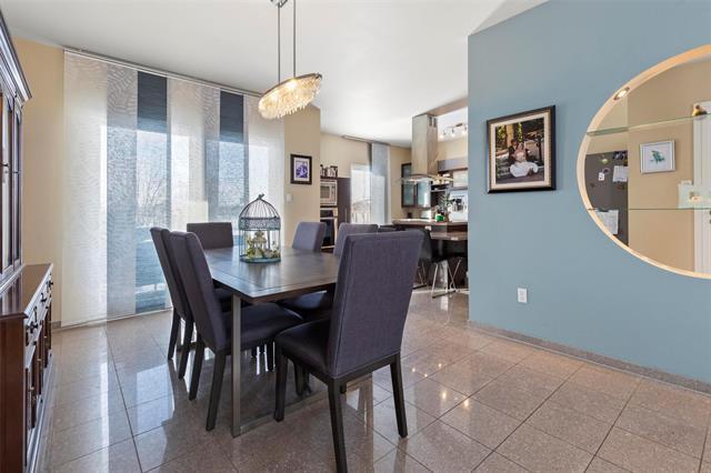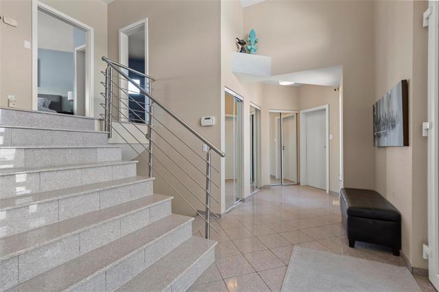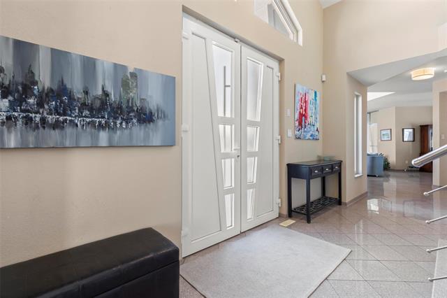 Sprawling 1,620 square foot custom split-level set on an oversized lot just steps from Clearspring Middle School. This thoughtfully designed home blends timeless finishes with everyday functionality. Granite flooring flows through most of the main living spaces, while a formal front foyer and feature staircase create an unforgettable first impression. The in-floor heated main level offers a generous living and dining area overlooking the covered patio, along with a galley kitchen complete with walk-in pantry, built-in appliances, and patio door access to the massive backyard. A convenient two-piece bath is perfect for guests. Upstairs, the spacious primary bedroom is paired with a luxurious five piece bath styled as an ensuite, plus an additional bedroom currently used as a walk-in closet. The fully finished lower level also features in-floor heat, bright oversized windows, three additional bedrooms, a rec room, finished laundry, and a four piece bath. An insulated double attached garage with extra storage is complemented by a single detached garage built in 2019. Shingles and stucco were also updated in 2019.