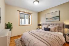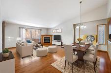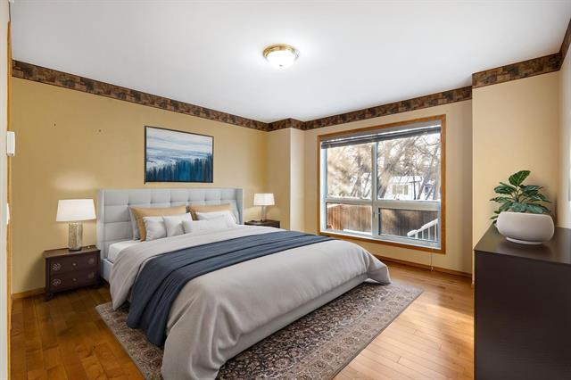 Showings start February 2, Offers presented February 10, 2025. A rare opportunity to own this impressive 3-bedroom, 3-bathroom condo with den, fully finished basement, and a 12’ x 12’ three-season sunroom. Meticulously maintained throughout, these type of units don't come around everyday! The open-concept living and formal dining areas feature gleaming hardwood floors and a cozy gas fireplace. The peninsula-style kitchen with custom tile flooring offers abundant cabinetry and counter space. The spacious primary bedroom accommodates a king-sized suite and includes a walk-in closet and 3-piece ensuite. A generous second bedroom and full main bath complete the main floor. The lower level doubles the living space with a large recreation/media room and third bedroom with ensuite. Floor-to-ceiling windows flood the home with natural light and extend into the sunroom overlooking private backyard green space and deck. Additional features include main floor laundry, central air, attached double garage, and ample storage. Ideally located in a quiet, park-like setting close to all amenities with low condo fees — perfect for downsizing. Call today to book your appointment.