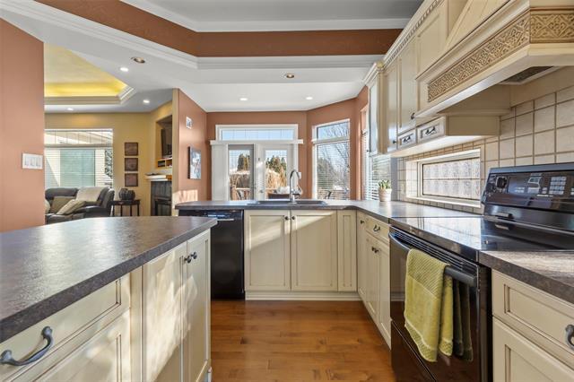Former show home showcasing quality craftsmanship and timeless design, perfectly suited for your forever home. Ideally located in sought-after Georgetown, backing onto green space with walking paths leading to golf, the aquatic centre, parks, groceries, and restaurants. A dramatic 15’ tiled foyer welcomes you with views of the fenced, landscaped backyard. The great room features a tray ceiling and gas fireplace, flowing seamlessly into the gourmet solid-wood kitchen with custom finishes and a glass-block backsplash that fills the space with natural light. Sun filled dinette with expansive windows overlooks the deck and yard, while a separate dining room offers elegant entertaining space. Main floor laundry and mudroom connect to the 24’ insulated garage. Three main floor bedrooms include an oversized primary retreat with spa-inspired ensuite, tiled glass shower, and jetted tub. Engineered suspended wood basement flooring provides a warm, main level feel with ducting below. An exceptional home in an unbeatable location.