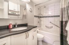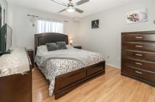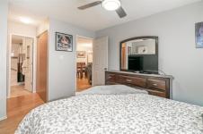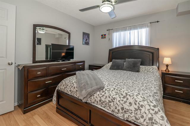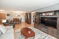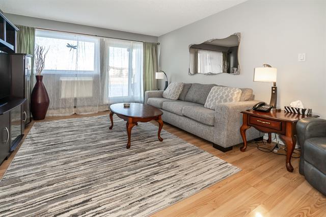 S/S Feb 10, OTP Feb 16 at noon. Welcome to this updated main-floor condo in desirable Linden Woods. This 848 sq ft condo offers exceptional value with 2 bedrooms and 2 full bathrooms, thoughtfully designed with a split-bedroom layout for added privacy. The unit has been tastefully updated over the years and features an espresso-toned kitchen with ample cabinetry, excellent functionality, and space for an upright freezer. Easy-care laminate flooring runs throughout the unit. The updated 3-piece bathroom includes a tiled shower surround, frameless glass doors, and a built-in seat. The primary suite offers two closets and an updated ensuite with a deep soaker tub. Nearly new smart washer and dryer with Wi-Fi capability are included. For added comfort and peace of mind, both the windows and sliding patio door have been updated, leading to a poured concrete patio. This bright west-facing unit includes one parking stall, with additional parking and rental storage lockers available. Enjoy excellent on-site amenities, including a well-equipped fitness centre and an in-ground pool—no gym membership required. Low condo fees, outstanding amenities, and a prime location make this an excellent opportunity.