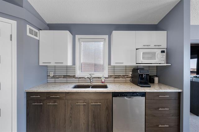 Welcome to this absolutely fabulous home that has been lovingly and meticulously maintained. Offering 1300 sqft of bright, functional living space, this 4 bedrm, 2 bath beauty is packed with thoughtful updates and great style. Vaulted ceilings throughout create an open, airy feel the moment you step inside. The spacious dining room is flooded with natural light—perfect for gatherings. The eat-in kitch which was updated in 2018 is a true standout with quartz countertops, tiled backsplash, stainless steel appl, pantry space, and a layout that flows seamlessly into the bright living room, ideal for entertaining. The primary bedrm is generously sized with his and her closets and direct access to the main 4pc bath, while the second bedrm is also a great size. Downstairs, the fully finished bsmt offers a large rec space, two generous bedrms, a 4pc bath, and ample storage. Outside, enjoy a fully fenced yard & deck—perfect for summer days. Updates incl. Shingles, HWT, furnace, garage door, front door, rear windows, blown-in insulation, and more. Located close to schools, parks, shopping & amenities. Don’t miss your chance to call this one home!