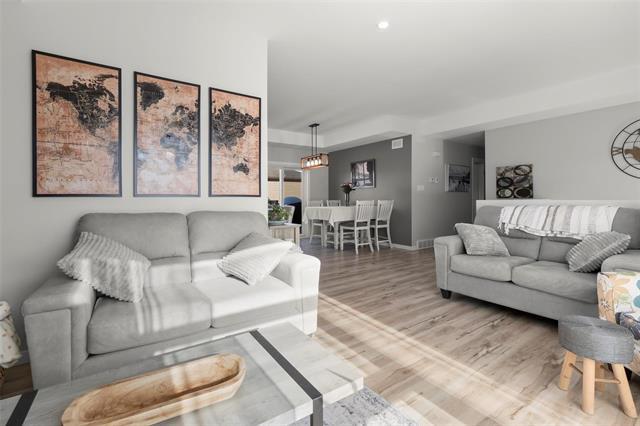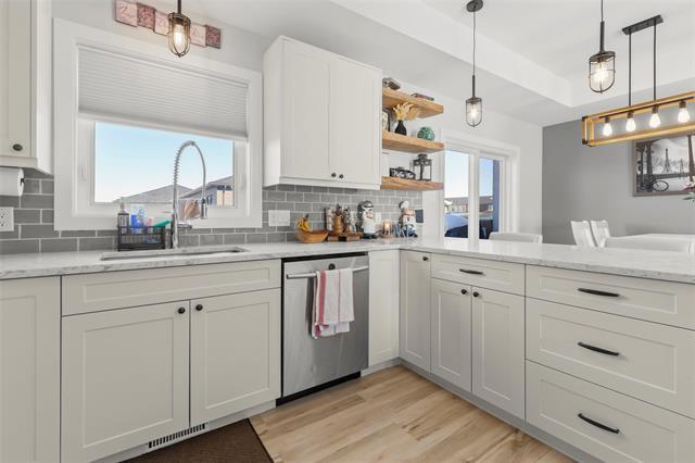 Step into style and comfort in this beautiful bilevel home! The kitchen dazzles with quartz countertops (new in 2022), floating shelves, a chic tiled backsplash, and a walk-in pantry. Sunlight fills the kitchen, dining, and living areas, highlighted by 9’ tray ceilings and patio door leading to a deck perfect for entertaining. New LVP flooring in 2022 adds a modern touch throughout. Retreat to the primary suite with dual closets and a private 3 piece ensuite, while two additional bedrooms and a full bathroom complete the main floor. The fully finished lower level features a spacious rec room, two more bedrooms, a 3 piece bathroom, and laundry/utility room. Outside, a fully fenced backyard awaits with a generous deck, gazebo, and garden boxes.