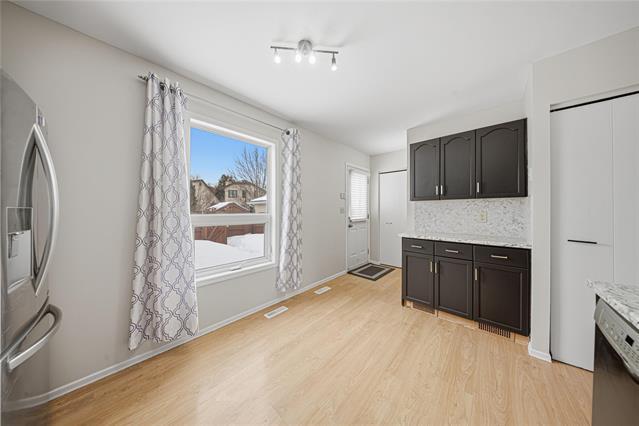 ss feb17 open house feb 22 sunday 2-330pm offers feb 22 sunday evening. Fantastic 2-storey in Meadowood. Updated kitchen w/stainless steel appliances and loads of cupboards and hood fan vented to outside. Perfectly located 2-pce bath off back entry with newer vanity & tiling. Lovely Living room, convenient dining area features laminates, a big front window to allow natural light to cascade in and wood burning FP for those chilly nights. Three good sized bedrooms upstairs featuring a large master bedroom with walk-in closet, second bath is a 4pc also with newer vanity & tiling. Finished basement with gaming-computer nook. Back yard is fenced and offers a patio, shed & parking for 2 cars. Upgrades include: Appliances, Furnace & A/C (2013), shingles, soffit, fascia (2008), windows (2008), washer & dryer (2024) many light fixtures (2026) sump pump and just freshly painted last week. Located close to all levels of schools, shopping, transit and playground. This Home is worth viewing and offers lots of living space for the price.