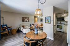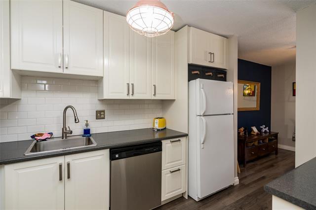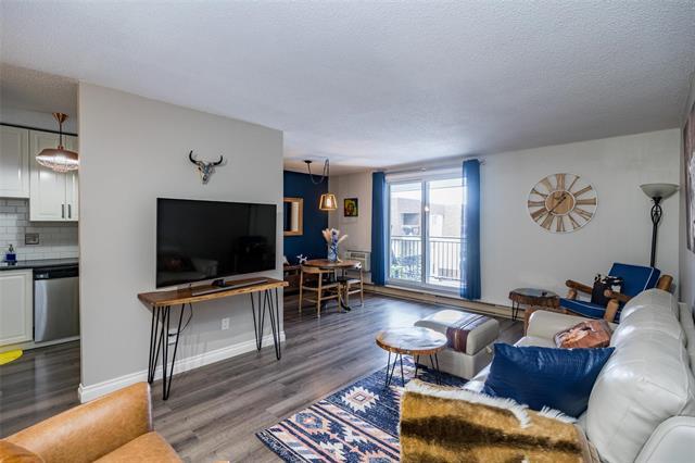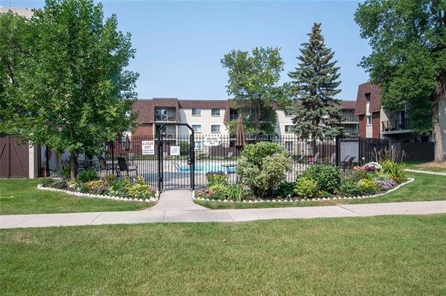 Showings start Wednesday Feb 25th, Offers presented Monday March 2nd at 7pm. Perfectly located on the top floor overlooking the park like courtyard and pool area from a nice private balcony. Inside this updated and modern condo is newer tasteful flooring, newer kitchen including white Ikea cabinets with soft close features, classic subway tile, overhead microwave and my favorite the coffee nook with plenty of storage below. A well-designed kitchen. The bathroom is neat and stylish with is updated large vanity and barn style mirror. Inside the spacious bedroom is plenty of room for a desk or dresser set plus a walk-in closet for any size wardrobe. The perfect location with a view of the green space and pool but not too close to the pool. Balcony door recently replaced. This condo backs onto one of River Heights best kept secrets which is Joe Malone Park. Hosting a walking path around the soccer field, a newly paved tennis court, playground and plenty of benches and trees. Parking stall 107 just steps from the door. Don't miss this opportunity to get into this high demand concrete condo with the perfect location within the building. Up to 2 pets allowed any size.