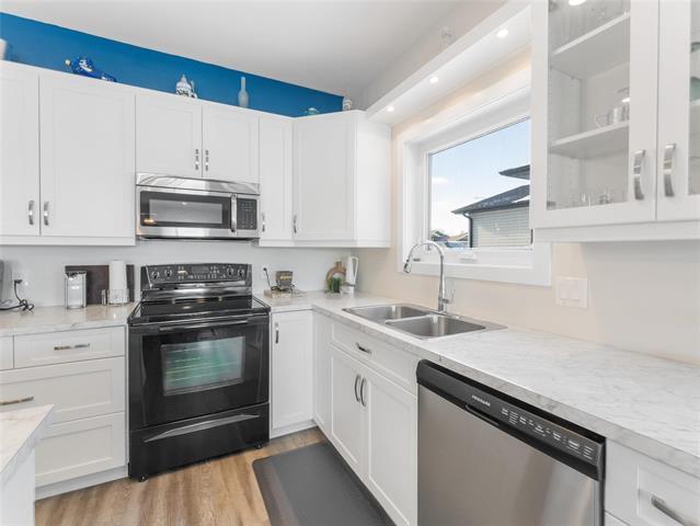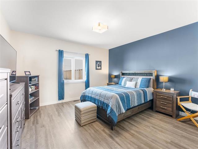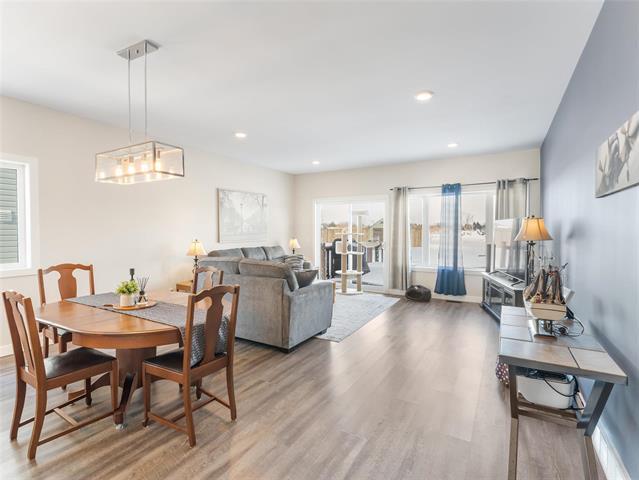 S.S. Feb 26th. Offers reviewed the evening they are received. Welcome to this well maintained spacious, open-concept bungalow with no steps involved! Enjoy the bright white kitchen featuring soft-close cabinetry, an 8' island & abundant cupboard & counter space making it the perfect space to entertain and gather as the kitchen flows seamlessly into the dining area and living room, where patio doors open to a meticulously maintained landscaped backyard complete w/ a patio, fire pit, and shed. The generous primary bedroom incls a walk-thru closet and 3 pc ensuite. A well-sized second bedrm is conveniently located next to the main 4 pc bathrm. Additional highlights incl 9' ceilings, 36-inch-wide doorways, ICF foundation. The crawl space provides excellent storage and houses the hot water tank ('22), electric furnace and HRV. The south-facing covered front patio is great for relaxing on and conversing with the neighbors. The oversized single attached garage is heated & insulated and can fit a large truck! The driveway can accommodate up to six vehicles (fewer if larger trucks). The backyard backs onto a walking path leading to green space and a quick walk to the school, great for enjoying the outdoors.
