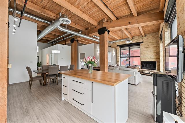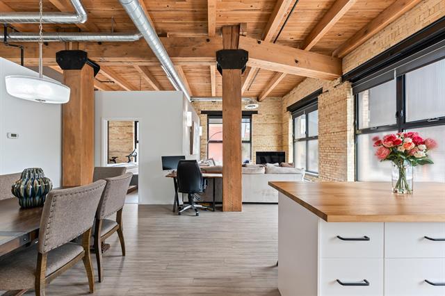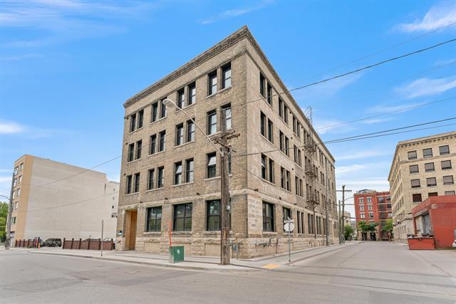 Can you say super cool?1140 sq foot contemporary corner unit condo is flooded with light and incredible floor to ceiling windows!Full of exposed brick and huge Fir beams!This 1 bedroom 1 bath condo is sure to impress! Super spacious open concept!This former Display suite will not disappoint-same owners for 9 years!Huge Island in the kitchen and tons of cabinet/counter space. Quartz and butcher block counters!!Spacious primary bedroom easily accommodates a King sized bed, has large double closets and huge windows!This condo conversion offers all the modern amenities such as central air and new windows throughout but keeps the vibe of turn of the Century features! The original plans had layout for a second bedroom if necessary!Condo fees include all utilities! Steps away from the Theater District, Concert Hall,coffee shops,tons of great restaurants bars and shops!Convenience stores and a new Cigar Bar opening soon!Amazing sense of community in the area with always lots going on!Walk along the River path to the Forks with newly added Fitness stops and water fountains!Come check out what all the hype is about in Winnipegs Exchange District! You will love it!