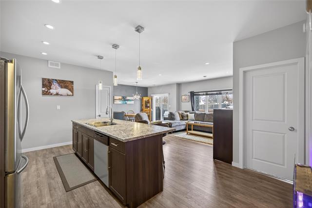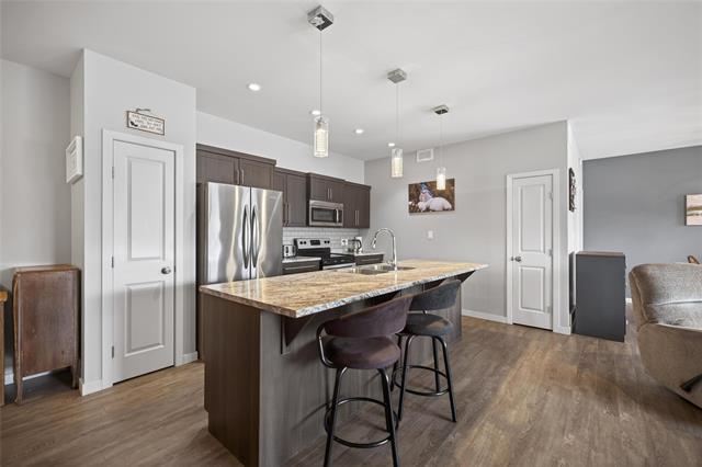Offers March 9th Eve. Welcome to this bright and beautifully maintained 2-bedroom, 2-bathroom corner-unit condo in Ile-des-Chênes, just minutes from Winnipeg. Built in 2014, this main-floor unit offers an ideal open-concept layout with a spacious kitchen, 2 pantries & large island which flows seamlessly into the bright living and dining areas. Patio doors lead to a large wrap-around balcony with ample space for patio furniture and BBQ, extending your living area outdoors to enjoy quiet mornings or entertaining evenings with friends. The primary bedroom includes a walk-in closet, private ensuite bathroom and a bonus garden door leading to the patio, while the second bedroom provides excellent flexibility for guests, family, or a home office. Additional highlights include in-suite laundry, two parking stalls, custom wood blinds in LR, new garburator and additional storage room. Ideally located close to amenities with an easy commute to the city, this condo offers the perfect blend of small-town living and urban convenience.