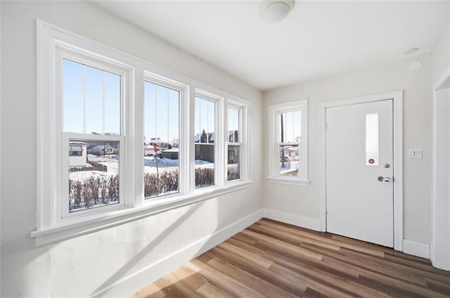 OTP March 17th. Adorable starter home or investment opportunity in quiet Elmwood location. Bright spaces with natural light through the main floor areas. Front porch/sunroom as you walk in - perfect for morning coffee! Spacious living room flowing into generous kitchen area w/ample storage and prep space. Main floor bedroom or office along w/ 2-pc main floor bath. Two bedrooms up including a sizeable Primary Bedroom and full 4-pc bath. Partially finished full height basement offering space for a rec room area, den & laundry. Freshly painted and refreshed home, featuring a high eff gas furnace ('16) newer HWT, PVC windows and vinyl plank flooring ('24). Updated electrical ('19) with newer 125AMP panel. Fenced rear yard w/ ample surface parking at the rear. Close to nearby parks/greenspace, Rossmere Golf Course, public transit and schools. Come check this one out today!