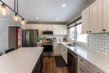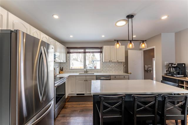 S/S WED MAR 18th, Offers Mar 23rd Noon! OPEN HOUSE SUNDAY 12:00- 2:00 PM. Discover this well-appointed, upgraded home featuring three bedrooms and two bathrooms, plus a finished lower level with a rec room, home gym, and potential fourth bedroom/office. The recently remodelled kitchen boasts an island with granite countertops. Set on a fenced lot, the property includes an oversized two-car garage (24'W x 22'L), which is insulated, heated, equipped with a pellet stove, and powered by 220 amps. The living room features a newer PVC window and an electric fireplace, while the primary bedroom comfortably accommodates a king-size bed. The fully fenced backyard highlights a newer interlocking stone patio. Additional upgrades include:• Shingles from 2015• Upgraded attic insulation• 2-year-old kitchen appliances• Furnace (2021)• Hot water tank (2023)• Air conditioning (2023)• A newer sump pump