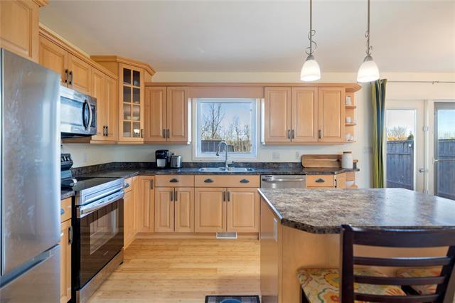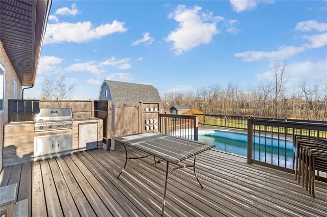 Offers March 31 - OPEN HOUSE Saturday March 28 @ 1-3pm. No backyard neighbors! Borders City greenspace with bush and walking paths! 16x20 workshop has an overhead door perfect for yard equipment and a loft that would be a beautiful craft space or man cave! The 1363 sqft home features generous rooms sizes, lots of natural light and multiple entertaining areas for family and friends. Total of 4 bedrooms and 5th bedroom/den, 3 pce ensuite and walk in closet off the primary, 4 pce bath on the upper and 3 pce bath on the lower, appliances included. Recent upgrades include shingles in 2025, forced air gas furnace in 2024, and central air in 2023. The attached 24x24 garage is insulated and has the Buyer preferred 2 overhead doors. The multi-level deck has a pool, built in BBQ and bar fridge plus patio fire pit area. The large fenced dog run could easily be removed and would allow for backyard access and additional boat or camper parking. Don't miss out, there is excellent value here - book a showing or plan to attend the Open House.