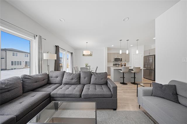 Welcome to 99 Jerry Klein Drive! Thoughtfully designed for growing families and elevated living, this home offers a rare 4 Bed layout all on the upper level perfectly balancing space, function, and privacy. Step inside to a bright, open concept main floor that immediately feels like home. The spacious great room flows effortlessly into a beautiful kitchen, featuring an extended island, quartz countertops, sleek cabinetry, and elegant pendant lighting ideal for both entertaining and daily living. The dining area overlooks the backyard through patio doors. Side entrance, and main floor powder room add both flexibility and practicality.