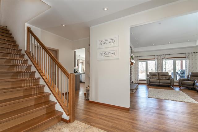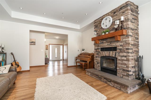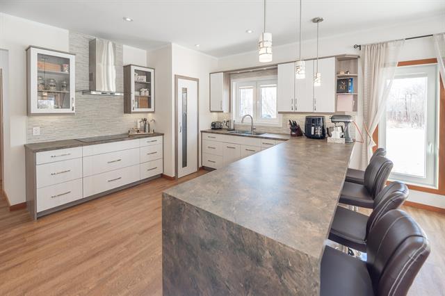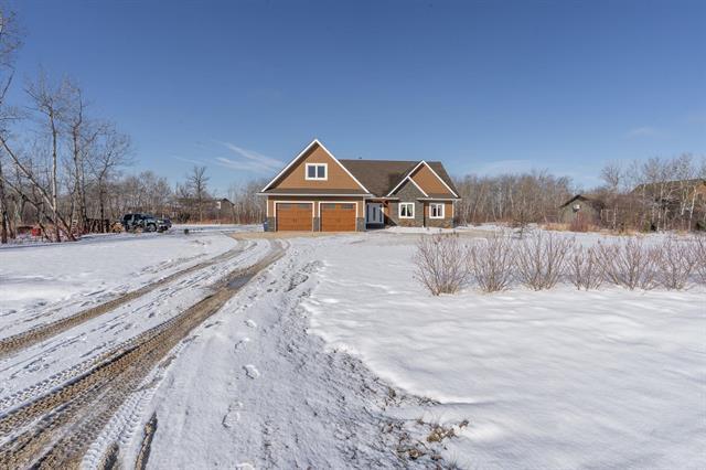 Welcome to this stunning custom-built bungalow on 2 beautifully treed acres in Kleefeld! This home offers exceptional quality throughout with triple pane European windows & doors, 9’ ceilings, and premium finishes. The spacious living room features a tray ceiling with 14 pot lights and a beautiful wood-burning fireplace with stone surround and timber frame mantle. The kitchen is a showstopper with double Electrolux wall ovens, Bosch induction cooktop, Bosch dishwasher, and double-door Electrolux fridge. Enjoy soft-close cabinetry, under-cabinet lighting, stone backsplash, and a walk-in pantry with built-ins and lighting. The primary suite includes a walk-in closet with built-ins and a spa-like ensuite with rain shower and custom cabinetry. Two additional bedrooms, a full bath, plus main floor laundry with 2-piece bath complete the main level. Finished ICF crawl space with concrete floor, HRV, and water softener. Outside features a 14’ x 16’ covered timber frame deck and stamped concrete front step. 26x26 insulated garage with 10’6” ceilings and 220V. A perfect blend of luxury and function!
