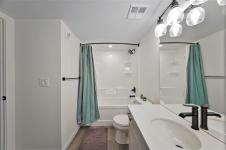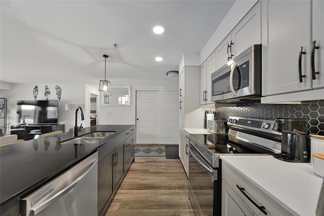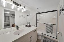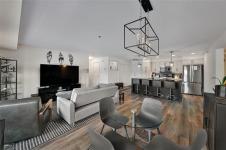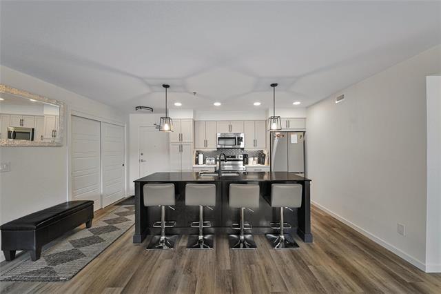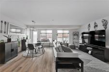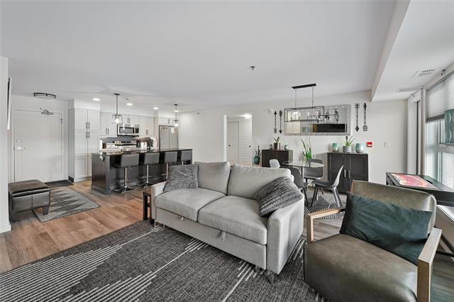 Showings begin Tuesday April 7. Modern living with gorgeous open concept. 2 bedrooms plus office, separate dining area, comes with 3 parking stalls including one underground. Beautiful island kitchen with quartz counters, tiled backsplash and stainless appliances. Large primary bedroom with huge walk in closet and full ensuite bath. 2nd bedroom is a nice size, another amazing full bathroom, office space perfect for remote work or use as a 3rd bedroom. Large patio. private fenced setting, walking distance to shopping, transit and good restaurants. In suite laundry, lounge area with pool table and fully equipped gym.