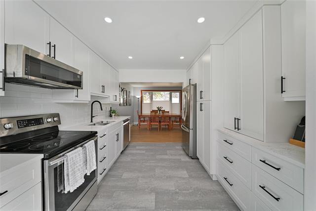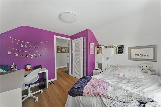 Showings start Wed April 29 at 5pm, Offers Mon May 4th, 6:30pm. Nicely located in Elm Park this 1200SF beauty comes with 3 bedrooms, 2 full baths including a newer white kitchen with quartz counters, floor to ceiling cabinets, under mounted sink, black faucets and handles, classic subway tile, stainless steel appliance package, full pantry and even a baking hideaway cabinet! A very well-designed kitchen open to a formal dining room with pot lights, refinished oak hardwoods, new front closet cabinetry with a cute front door bench. The main floor hosts a spacious primary bedroom with good closet space, makeup nook and a center hall closet accompanying a new stylish bathroom with modern gray tones and a big window for natural light. The second floor has two bedrooms with good closet space, new flooring and tall ceilings. The basement has a perfect rec space for the whole family plus a full newer bath, laundry and storage area. The home has been meticulously maintained with all new tri-pane windows, 200 amp panel, newer mechanicals and roof. The south facing backyard is full fenced with a single garage, patio area on a 45 x 116 lot. All this, just steps to the YMCA and all its amazing facilities!